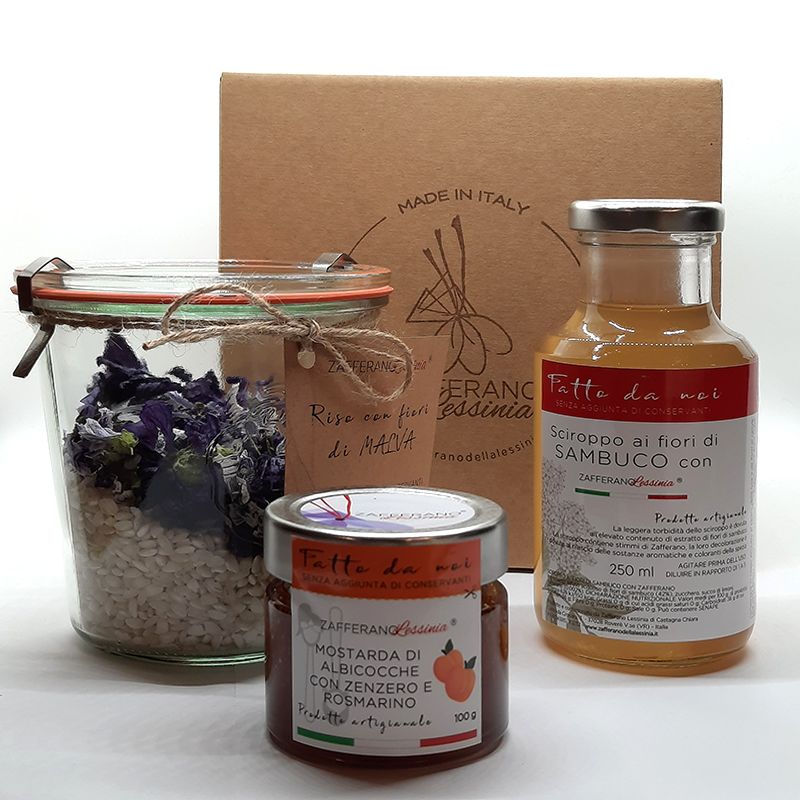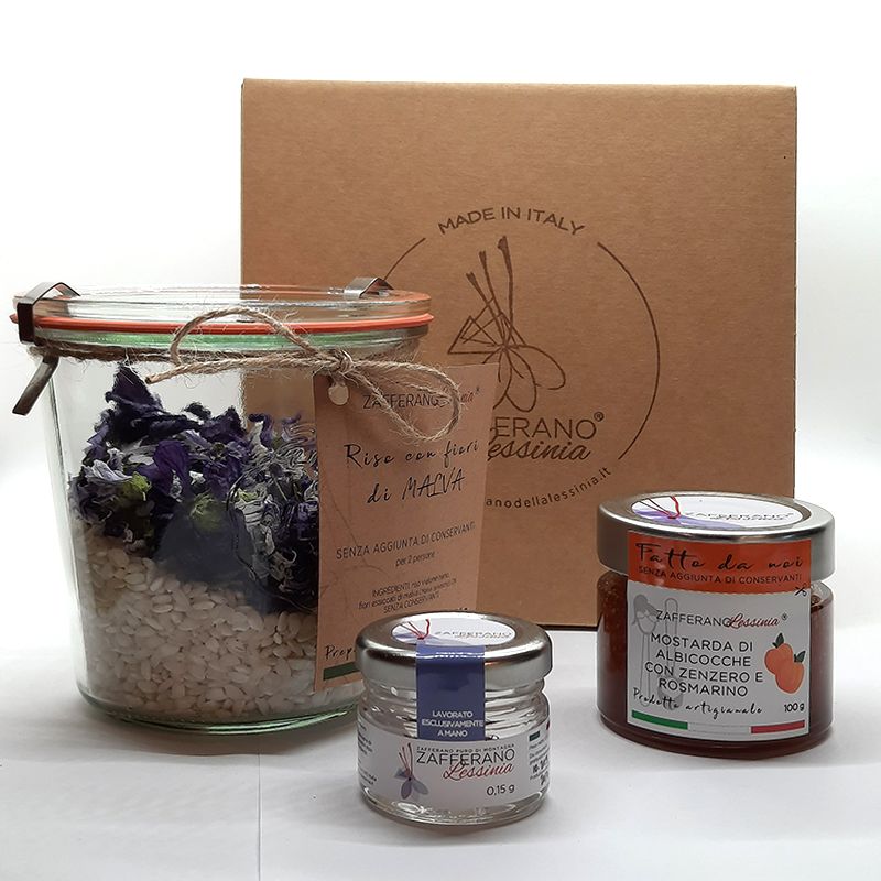 – Zafferano Lessinia® 0.15g o DolceFiore (zucchero grezzo di barbabietola con camomilla e Zafferano Lessinia®) 80g*