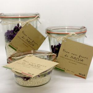 Preparato per risotto con riso vialone nano e fiori di Malva senza aggiunta di conservanti, naturale al 100%. Coltiviamo la malva nel pieno rispetto del territorio e della natura, senza l’impiego di diserbanti e fertilizzanti chimici ed essicchiamo i fiori a bassa temperatura per mantenere inalterate tutte le proprietà organolettiche.